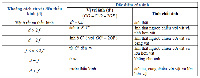 + Khi vật đặt rất xa thấu kính thì ảnh thật có vị trí cách thấu kính một khoảng bằng tiêu cự.