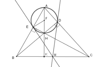 Nên bốn đỉnh $A,D,H,E$ cùng thuộc đường tròn tâm $F$ bán kính $\dfrac{{AH}}{2}$.