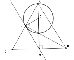 Từ (*) và (**) thì $HK$ là tiếp tuyến của đường tròn đường kính $AI$.