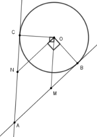 Do đó $MN$ là tiếp tuyến đường tròn \(\left( {O;{\rm{ R}}} \right) \Leftrightarrow \) khoảng cách từ $O$ đến $MN$ bằng R \( \Leftrightarrow OA = 2R\).
