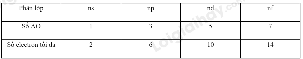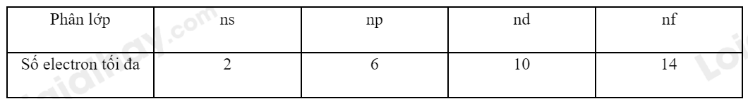 Chú ý: Số electron tối đa của mỗi phân lớp.