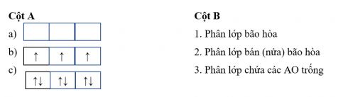 Ghép mỗi biểu diễn ô orbital của phân lớp p ở cột A với mô tả thích hợp ở cột B.