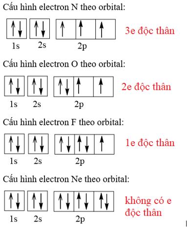 Trong các nguyên tử N (Z = 7), O (Z = 8), F (Z = 9) và Ne (Z = 10), nguyên tử có nhiều electron độc thân nhất là