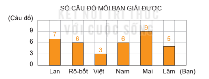 Rô-bốt đã thu thập, phân loại và ghi chép số câu đố mỗi bạn giải được rồi vẽ biểu đồ dưới đây.