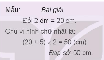 a) Tính chu vi hình chữ nhật có chiều dài 2 dm và chiều rộng 5 cm.