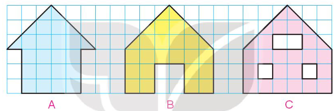 Việt cắt được các miếng bìa như hình dưới đây. Hai miếng bìa nào có diện tích bằng nhau?