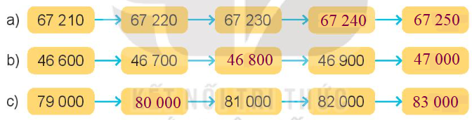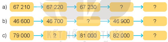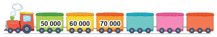 Điền các số tròn chục nghìn liên tiếp đến toa tàu cuối cùng.