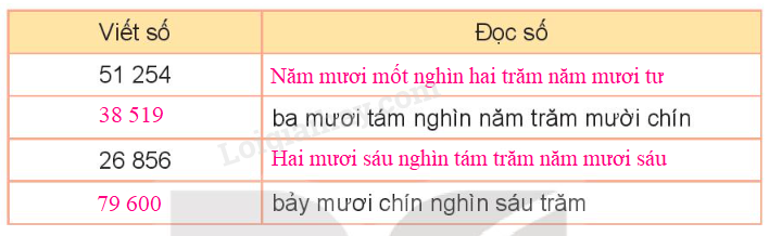 Đọc số (hoặc viết số) theo thứ tự từ hàng chục nghìn, hàng nghìn, hàng trăm, hàng chục, hàng đơn vị.