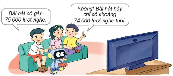 Biết rằng bài hát có 74 381 lượt nghe. Nam và Việt làm tròn số đến hàng nghìn, ai đã làm tròn đúng?