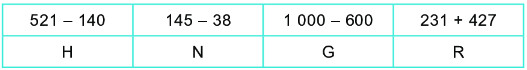 Tính kết quả của mỗi phép tính rồi tìm chữ cái tương ứng với kết quả đó để giải ô chữ trong bảng sau: