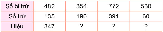 Áp dụng công thức: Số bị trừ – Số trừ = Hiệu.
