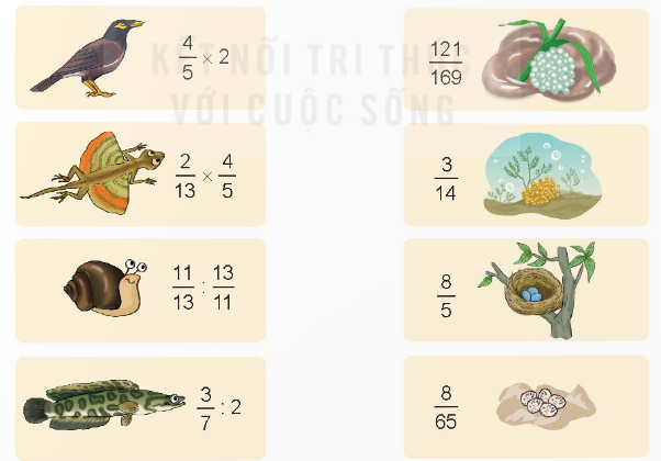 Thực hiện các phép tính nhân, chia phân số rồi nối với kết quả thích hợp