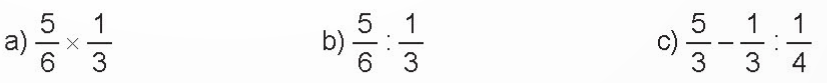 c) $\,\frac{5}{3} – \frac{1}{3}:\frac{1}{4} = \frac{5}{3} – \frac{1}{3} \times \frac{4}{1} = \frac{5}{3} – \frac{4}{3} = \frac{1}{3}$