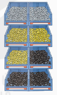 Một cửa hàng kim khí có 8 khay đựng ốc vít theo từng loại màu trắng, vàng, đen và số ốc vít ở mỗi khay là như nhau. Biết tổng số ốc vít là 800 cái.