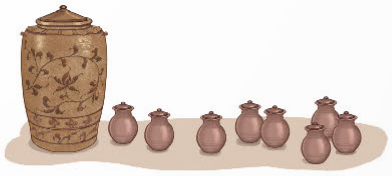 Từ một chiếc vại ban đầu đựng 15 $\ell $ tương, người ta rót vào tất cả các lọ nhỏ có trong hình, mỗi lọ $\frac{3}{4}$$\ell $. Trong vại còn lại ..?.. $\ell $ tương.