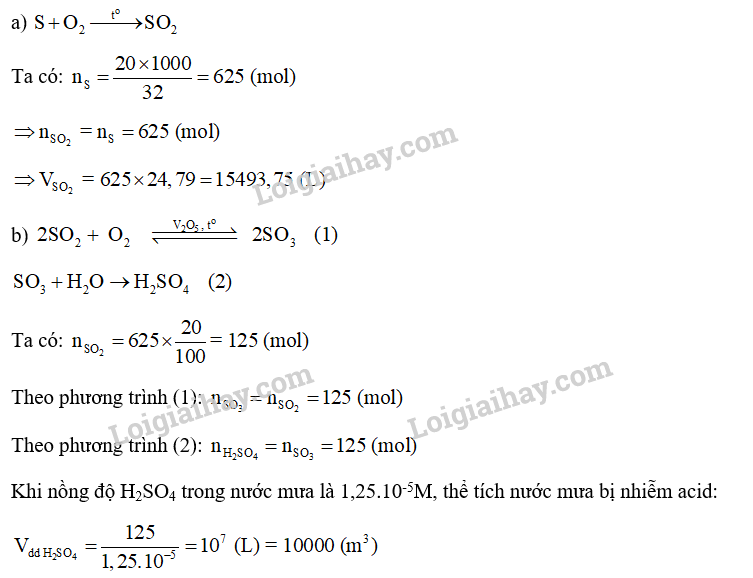 b) Giả thiết có 20% lượng khí SO2 trên bay vào khí quyển và chuyển hoá hết thành H2SO4 trong nước mưa theo sơ đồ: