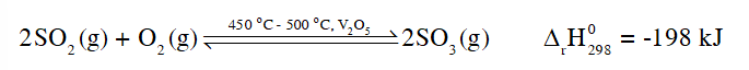 Phản ứng thuận là phản ứng tỏa nhiệt, theo nguyên lí chuyển dịch cân bằng Le Chatelier, để phản ứng chuyển dịch theo chiều thuận, ta cần giảm nhiệt độ. Tuy nhiên khi thực hiện phản ứng ở nhiệt độ thấp, thì tốc độ phản ứng nhỏ, phản ứng diễn ra chậm. Do đó, người ta chọn nhiệt độ phản ứng thích hợp, khoảng 450 °C – 500 °C.