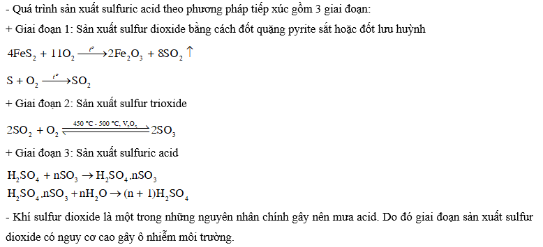 Sản xuất sulfur dioxide (SO2) có nguy cơ cao gây ô nhiễm môi trường. Vì những nguyên nhân sau:
