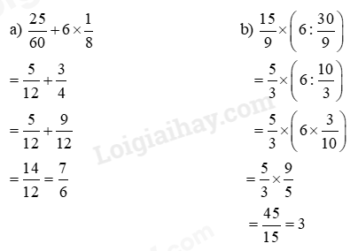 Rút gọn các phân số chưa tối giản rồi thực hiện tính giá trị biểu thức.