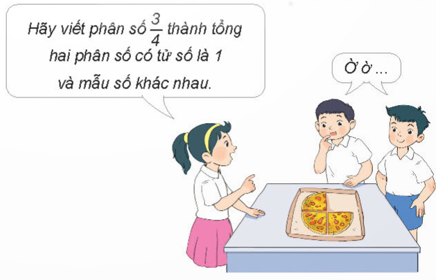 Tách phân số $\frac{3}{4}$ thành tổng hai phân số, sau đó rút gọn sao cho hai phân số đó có tử số là 1 và mẫu số khác nhau.