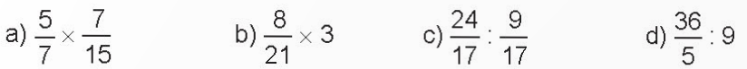 b) \(\,\frac{8}{{21}} \times 3 = \frac{{8 \times 3}}{{21}} = \frac{{24}}{{21}} = \frac{8}{7}\,\,\,\)