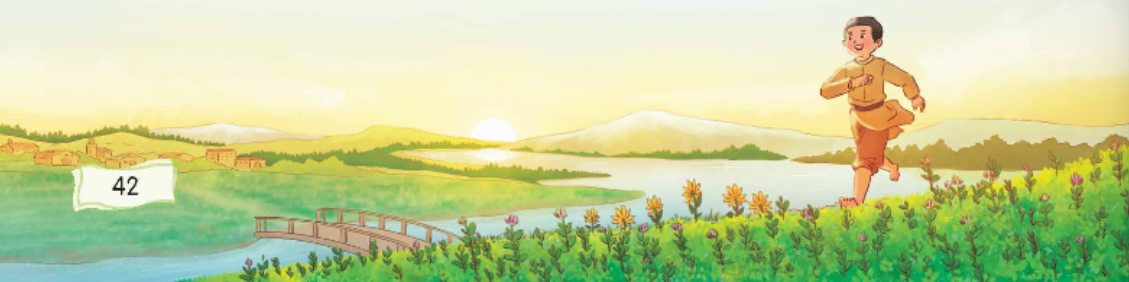 Tôi vừa chạy vừa quan sát mọi diễn biến xung quanh. Mặt trời vươn mình nhô lên sau dãy núi, cây hướng dương mọc hoang trên bờ kênh vươn về phía mặt trời. Đám cúc thỉ xa đầu trắng hau háu xúm xít vây lấy nó, nhưng nó không chịu thua nó thè ra những chiếc lưỡi vàng, đón lấy những tia nắng ban mai, cho bầy quả nang chặt cứng hạt uống no ánh sáng. Kia là lối qua kênh, mặt đất nát nhừ vì xe cộ qua lại nhiều, nước rỉ qua những vệt bánh xe. Kia là đám cây bạc hà thơm thơm mọc cao ngang tầm thắt lưng, nom như một hòn đảo nhỏ màu tím nhạt. Tôi chạy trên mảnh đất quê hương, trên đầu tôi chim én thi nhau lao vun vút.