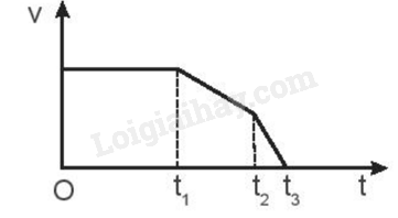 Một người lái xe tải đang cho xe chạy trên đường cao tốc với vận tốc không đổi. Khi thấy khoảng cách giữa xe mình với xe chạy phía trước giảm dần, người đó cho xe chạy chậm dần. Tới khi thấy khoảng cách này đột nhiên giảm nhanh, người đó vội đạp phanh để dừng xe. Hãy vẽ đồ thị vận tốc – thời gian mô tả trạng thái chuyển động của xe tải trên.