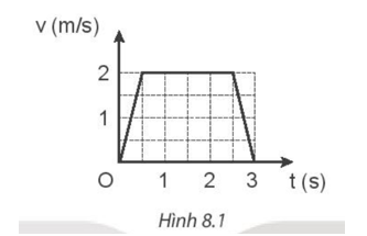 Hình 8.1 là đồ thị vận tốc – thời gian của một thang máy khi đi từ tầng 1 lên tầng 3 của toà nhà chung cư.