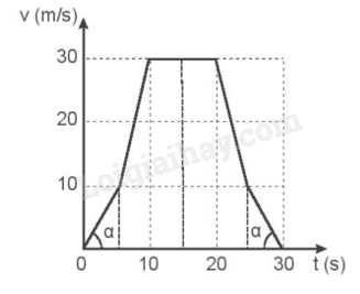 => tan α = \(\frac{{v – {v_0}}}{{t – {t_0}}}\)= \(\frac{{10}}{5}\)= 2.