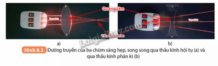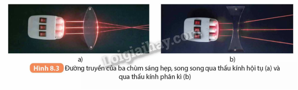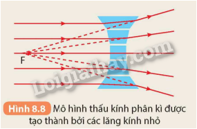 Hãy phân tích tương tự và giải thích sự truyền ánh sáng qua thấu kính phân kì (Hình 8.8)