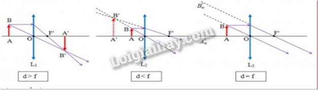 Khi d<f, ảnh A’B’ là ảnh ảo, cùng chiều, lớn hơn vật