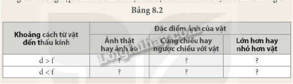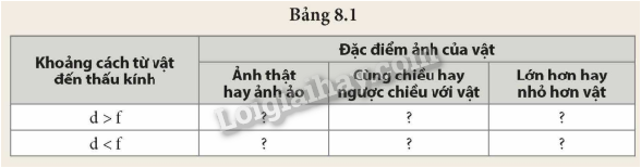 Nhận xét đặc điểm ảnh của vật trong các trường hợp trên theo mẫu bảng 8.1