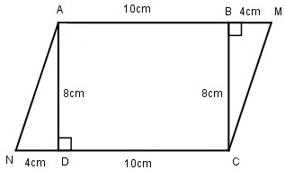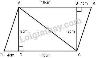 Nhìn hình vẽ ta có: AD = BC = 8cm; BM = ND = 4cm.