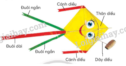 Các bộ phận chính của diều giấy là: