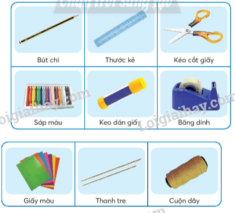 Em hãy sử dụng vật liệu và dụng cụ dưới đây để làm diều giấy.
