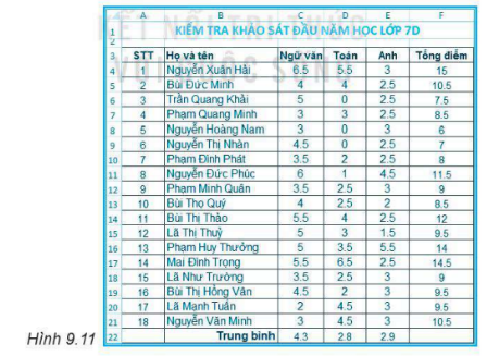 Thực hành: Mở lại tệp Bangdiem.xlsx và trình bày lại theo mẫu như Hình 9.11