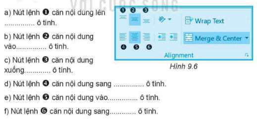 Quan sát Hình 9.6 và điền các từ/cụm từ sau: giữa (theo chiều ngang), trái, giữa (theo chiều dọc), đỉnh, phải, đáy vào chỗ trống (…) cho phù hợp: