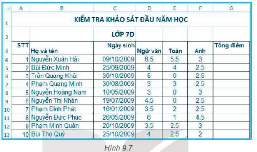 Cho bảng dữ liệu như Hình 9.7