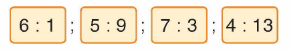 $6:1 = \frac{6}{1}$ ; $5:9 = \frac{5}{9}$