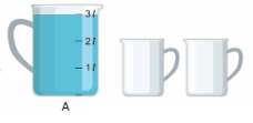 Rót đều tất cả nước trong bình A vào 2 bình nhỏ.