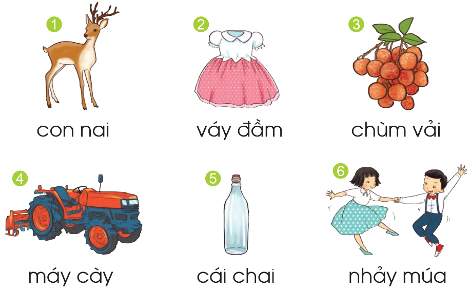 Tiếng có vần ay là: váy, máy cày, nhảy.