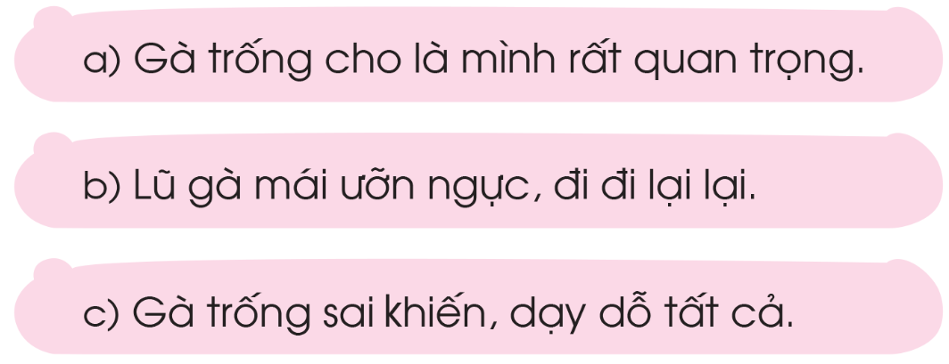 c. Gà trống dạy dỗ, sai khiến tất cả.