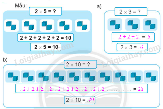 Viết các phép nhân trong bảng nhân 2 (theo mẫu).