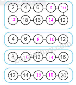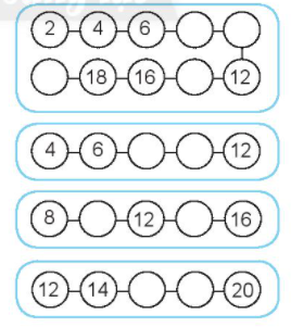 Đếm thêm 2 đơn vị rồi viết các số còn thiếu vào chỗ trống.