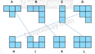 Quan sát hình vẽ, em hãy nối hai hình mà nếu ghép chúng lại ta được hình vuông.