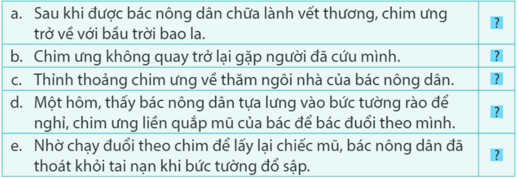 e. Nhờ chạy đuổi theo chim để lấy lại chiếc mũ, bác nông dân đã thoát khỏi tai nạn khi bức tường đổ sập.