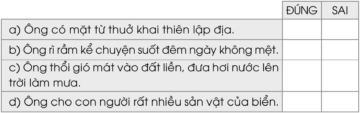 Ông Biển đem lại những gì cho con người? Đánh dấu √ vào ô thích hợp: