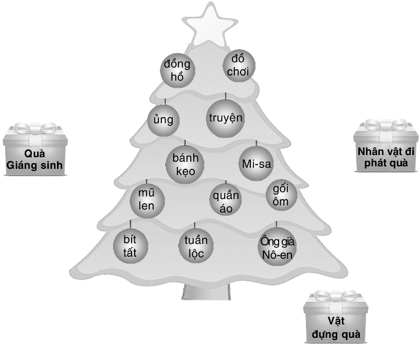 – Vật đựng quà: Ủng, mũ len, gối ôm, bít tất.