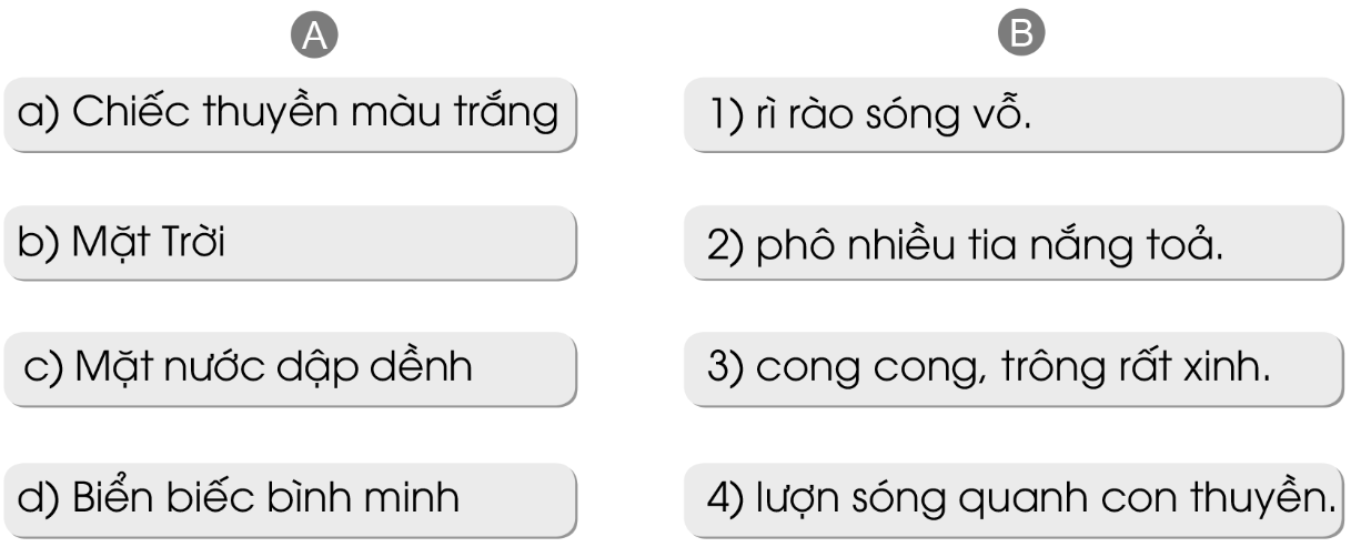 Nối từ ngữ ở bên A với từ ngữ phù hợp ở bên B để miêu tả bức tranh mà cô giáo tạo nên từ những tờ giấy màu.