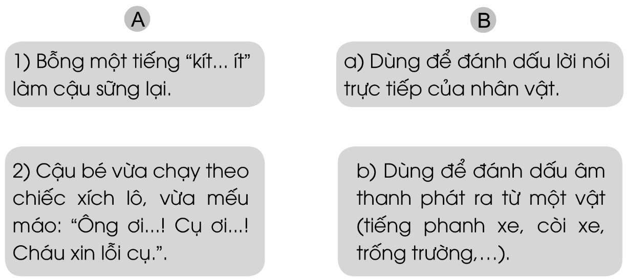 b. Dấu ngoặc kép trong mỗi trường hợp dưới đây được dùng để làm gì? Nối đúng: